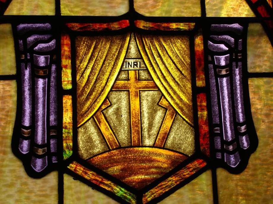 Symbol which shows three crosses on Calvary. The curtain symbolizes the curtain that was ripped in the temple at the time of Jesus’ death. This ripping of the curtain shows us that by Christ’s death we are no longer separated from God our Heavenly Father.