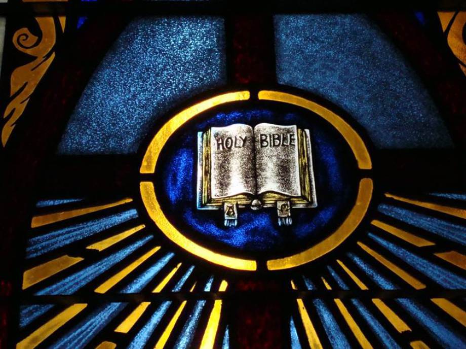 Open Bible. God speaks to us through His Word, therefore the Bible is here used to bring our attention to this way of God making Himself known to people. The special message He brings is that, even thought we are sinners, we have salvation through Christ.