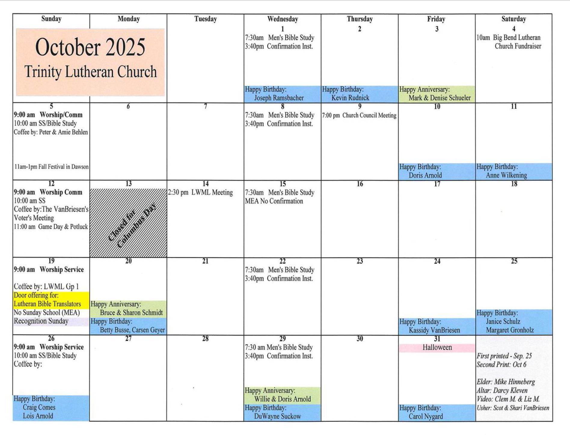 Oct 2025 Calendar (updated)