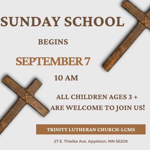 Sunday School begins Sunday, September 7 at 10 AM. It is for children ages 3-8th grade. Teen group is for 9-12th grade. We would love to have your children join us! Contact us at trinitylcmssundayschool@gmail.com to sign up any new students. We look forward to helping your child continue to grow in their faith journey. Families are encouraged to join us for Sunday School this day as we kick off a great year!